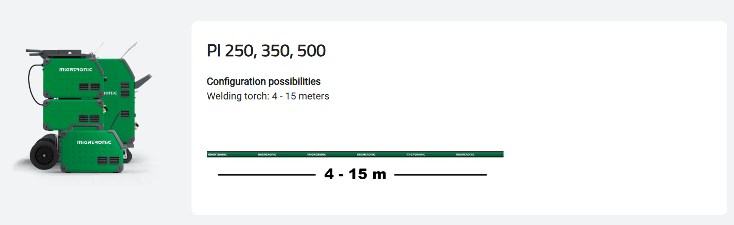 Серията Migatronic Pi TIG съдържа три трифазни токоизточника (250 А, 350 А, 500 А) за ВИГ заваряване и заваряване в режим електрожен.